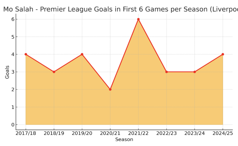 Despite what has been perceived, Salah has only ever scored more than three goals in the opening seven games on four occasions in the last eight seasons.
