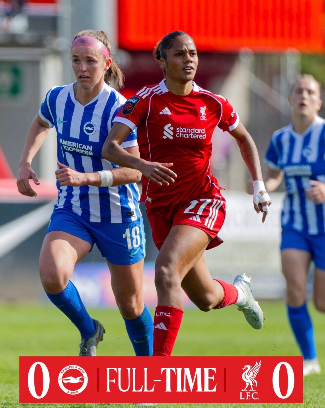 The hosts created better opportunities in the opening half but lacked a clinical edge. Rosa Kafaji and Fran Kirby both push highly presentable chances for the Seagulls. At the other end, Liverpool struggled to connect their forward lines, though Mia Enderby missed a golden one-on-one opportunity to steal the lead. A frantic period of stoppage time saw both keepers called into dramatic action, ensuring the match ended without a goal.